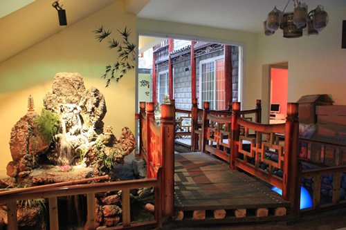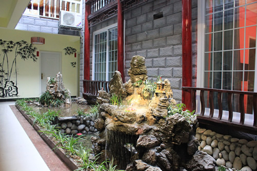 客棧內景假山觀賞處