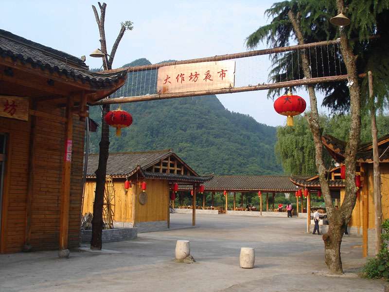 張家界武陵源大作坊美食城是一家集垂釣休閑,特色餐飲,夜市為一體的大型風味美食城!位于風景如畫的武陵源風景區(qū)區(qū)政府所在地,占地3000多平方米,可同時容納400多人就餐。這里也是景區(qū)內(nèi)匯集土家美食,苗家美食的第一坊!美食城按純木四合院建造,內(nèi)設酒作坊,豆腐作坊,臘味作坊,糍粑作坊,有垂釣區(qū),燒烤區(qū),菜品自助區(qū),客人廚藝展示區(qū),農(nóng)產(chǎn)品展銷區(qū)等。酒作坊內(nèi)聘請了民間煮酒大師現(xiàn)場煮酒,你有機會可以現(xiàn)場吃到熱乎乎的頭鍋酒,酒坊內(nèi)有純米酒,包谷燒,高梁酒,有用野果泡制的各種果酒---燈籠酒,楊梅酒,彌猴桃酒等,更有特色的是把高梁酒放在正在生長的楠竹內(nèi),用竹內(nèi)竹膜的香味把酒增香,十二天就把竹子砍下再放養(yǎng)三天就好了,客人要吃現(xiàn)場鋸竹筒酒吃!豆腐坊也是聘請民間老農(nóng)現(xiàn)場用自制的石磨做豆腐,在這里你可以吃到真正有豆香味的原汁原味的石磨豆腐,和渣,菜豆腐,豆腐腦等豆制品!臘味作坊里有冬天用各種香料熏制的正宗湘西藏臘肉,臘豬頭肉,臘香腸,臘豬腳,各種臘制品臘野味等。糍粑坊每天在晚上人多用餐高峰時現(xiàn)場打滋粑,客人也可以自己參與打糍粑這個快樂的過程,想受過年時才有的熱鬧情景!在垂釣區(qū)里我們放養(yǎng)有很多野生魚類,有時間了你可以來這里休閑垂釣,得到的魚我們就會給你現(xiàn)場加工,有清沌的,紅燒的,青椒燜的,酸湯的,都很好吃哦。燒烤區(qū)里,我們高薪聘請了燒烤大師為你現(xiàn)場制做,你也可以自己動手,有烤羊排羊腿,各種串烤,烤全魚,烤全兔等,還有各種鐵板烤可以自己炒著吃!菜品自己選區(qū)里有各種山野菜,壇子菜,干菜,臘味等,有各種鮮活的魚類,河蛘,水魚,田螺,龍蝦等,有各種農(nóng)家的土雞土鴨等,有各種鮮活的野味等你來享受美味呢!客人廚藝展示區(qū)里老板特設制地幾口大鍋, 很有特色的是, 你可以自己親自下廚, 酸甜苦辣任您自由調(diào)配 。 煮好了, 大家就圍著這“灶臺”合一的飯桌享受張家界的美食了。(張家界的三下鍋是很有特色的,是邊煮邊吃的, 只是這“三下鍋”是“大型三下鍋”而已。到張家界旅游,吃張家界的“三下鍋”是一種獨有的旅游體驗,到大作坊吃“大型三下鍋”,則更將會為你的旅程增添一份難得的回味。農(nóng)產(chǎn)品展銷區(qū)里展示著當?shù)鼗蛳嫖鞯貐^(qū)最暢銷的農(nóng)產(chǎn)品食品:正宗湘西鄉(xiāng)里臘肉,香腸,各種臘制品,洗車河霉豆腐,靈潔牌剁椒辣醬系列,菌油,正宗茶籽油,苗家酸湯,鄉(xiāng)里正宗葛粉,大壇湘西五糧液,竹簡敲敲酒,張家界茅巖霉茶,野生蜂蜜,高山葛粉,張家界第一山珍巖耳,葛根片等等! 武陵源大作坊美食城是武陵源景區(qū)規(guī)模最大,品種最多,環(huán)境最優(yōu)雅的休閑美食城。有各式小炒火鍋,岳陽特色燒烤系列,鐵板燒系列,鴨霸王系列,潮州特色砂鍋粥系列,涼菜醬菜系列,湘西地方特色小吃系列等。美食城整晚邀請著名的流浪歌手阿彪為你獻歌助興,并可同阿彪歌聲互動,在這里你可以放下一天的疲勞,拋開一身鎖事,度過美好的每一分鐘......武陵源夜市大作坊,是張家界旅游體驗的重要一站,它受到如此多的游客的熱捧,是因為,在這里能釋懷,是因為在這里,能體驗張家界旅游的文化內(nèi)涵, 是因為在這里,能給你一個自由的空間......