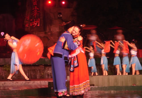 姑娘出嫁,為女人一生中最大的喜事,本應(yīng)充滿幸福、歡樂(lè)的氣氛。然而,舊時(shí)湘西、湘南、鄂西、川西(成都等地)、黔東(銅仁、凱里一帶)諸地,卻流行著一種與之完全相反情調(diào)的古老婚俗——“哭嫁”。也就是在姑娘“出閣”之前,不但新娘本人哭得很傷心,像淚人一般;而且,新娘的母親、姐妹以及姑媽、姨媽、舅媽及其他交往較多的女友,都要陪著新娘哭。湘西土家族哭嫁的風(fēng)俗尤為普遍、濃厚,不但哭嫁的時(shí)間較長(zhǎng)(少則十來(lái)天,多達(dá)個(gè)把月),而且哭嫁歌也保存得古樸、完整。 姑娘出嫁為什么要哭?哪有那么多的東西可哭?這是一種蘊(yùn)含甚為豐厚的人生禮俗,也是一種饒有興趣的婚俗事象。 俗話悅:“人不傷心不落淚!惫媚锍黾拗砸,是因?yàn)樵谂f式婚姻制度下,女孩(尤其是勞苦大眾家庭的女孩)總是作為犧牲品“拋”(賣)給夫家的,她們的身心受到極大傷害。因此,湘西等地的女孩在出嫁之前要哭泣,要呼號(hào),哭嫁歌就是感情發(fā)泄的最好表現(xiàn)方式。 哭嫁的源起 哭嫁的風(fēng)俗,不知道起源于什么時(shí)候。戰(zhàn)國(guó)時(shí)期,趙國(guó)的公主嫁到燕國(guó)去作王后,她的母親趙太后在臨別時(shí)"持其踵,為之泣,祝曰,必勿使返。"大約就是后來(lái)長(zhǎng)盛不衰的哭嫁風(fēng)俗的濫觴了。 這種風(fēng)俗,直至清末還盛行于四川農(nóng)村中,隨地區(qū)變化而大同小異。解放前,聽老人們說(shuō),早些時(shí)候,沒(méi)有嫁而不哭的人家。如果出現(xiàn)嫁而不哭的姑娘,也會(huì)被鄰里看作沒(méi)有教養(yǎng)的人,傳為笑柄;相傳有出嫁姑娘不哭而遭母親責(zé)打的事,這位母親當(dāng)然算得上是入流導(dǎo)演了。 舊時(shí)宣講故事中,有花轎臨門,父親強(qiáng)令哭《迎風(fēng)罵媒歌》的情節(jié),可知哭嫁是有歌詞的,帶有表演性質(zhì),原是用來(lái)渲染氣氛,以悲襯喜;不過(guò),因?yàn)榛橐鍪前k的,真哭真罵的也不會(huì)少。 抗日戰(zhàn)爭(zhēng)后期,風(fēng)氣較開,哭嫁之風(fēng)已不盛行,而老人們卻還在津津樂(lè)道,哭的方式是,從婚期前一個(gè)月的首日起,入黃昏,姑娘訴哭約一個(gè)小時(shí),其聲嗚嗚。十天以后,她的母親加入"陪哭";又十天以后,她的祖母加入陪哭。這家沒(méi)有諸姑姊妹,人們說(shuō),如果有的話,也應(yīng)當(dāng)加入陪哭行列的。 哭嫁在川西叫"坐堂"。清代吉道人《味蔗軒隨筆·坐堂詞》云:"婚姻之禮,各省風(fēng)俗不同。然酌禮準(zhǔn)情,各省亦大同小異。凡男家娶婦先賦之詩(shī),謂之'催妝';女家親串頌女之詞,謂之'坐堂'。坐堂者,女當(dāng)喜期將近之先數(shù)夕,其諸姑伯姊,置酒為女祖餞,各述吉祥之詞,以為頌美,女則申己之意以答。女左右更有少女,則隨而嫻習(xí)者也。其詞要多鄙俚,然有音韻凄清,風(fēng)格遒勁,如古歌古謠者。羅江明府蔡,微服巡查鄉(xiāng)里,一日行至某處,值有女子歸,諸娣姒咸以諛詞頌女,女申意以答。忽風(fēng)吹句入耳,詞曰:'鳳凰落在桌子上,哪個(gè)女兒肯離娘'。一字一轉(zhuǎn),音韻凄其,誰(shuí)謂天籟之鳴,不在愚夫愚婦耶!"云云。吉道人姓周名際唐,成都人。吉道人記得明明白白,可惜他只記了一句哭嫁詞,難窺全貌。好在舊時(shí)坊間叢刻中有《訓(xùn)女哭嫁》一種,可見一斑。這本小書的目錄有《閨聲哭》、《娘訓(xùn)女》、《嫂哭妹》、《哭爹媽》、《哭哥嫂》、《花轎到屋哭》、《哭叔爺》、《哭兄弟》、《哭外公外婆》、《哭舅爺》、《拜香火哭》等等,編次有點(diǎn)凌亂,似乎隨手所記,未經(jīng)文人之手。遙想《詩(shī)》十五國(guó)風(fēng)未刪之時(shí),大約也不過(guò)如此吧! 閨聲哭 娘聽后園鳥雀驚,要聽房中女兒聲。 我娘當(dāng)門苦葛藤,手攀苦葛訴苦情。 我娘苦情苦過(guò)了,女兒苦情才起根。 ............ 桔子開花葉子青,陽(yáng)雀開聲我開聲。 新打銅盆才裝水,新打剪刀兩面青。 娘不開口我開口,娘不開聲我開聲。 當(dāng)門一根木蓮樹,目連樹上掛卷經(jīng)。 一本經(jīng)書背完了,未見我娘來(lái)開聲。 虧了我娘睡得穩(wěn),爹媽眼淚貴如金。 哭爹媽 月亮彎彎照華堂,女兒開言叫爹娘。 父母養(yǎng)兒空指望,如似南柯夢(mèng)一場(chǎng)。 一尺五寸把兒養(yǎng),移干就濕苦非常。 ............ 勞心費(fèi)力成虛恍,枉自爹娘苦一場(chǎng)。 哭兄弟 黑漆茶盤烏木頭,姐姐離娘弟不留。 留到姐姐吃你飯,留到姐姐穿你衣。 兄弟當(dāng)家掙家忙,嫁了姐姐買地方。 上頭買齊潼川府,下頭買齊遂寧鄉(xiāng)。 ............ 這個(gè)本子所記是川北的歌詞,以前所見的是川南,吉道人所記的是川西,川東,大約也不會(huì)大異的。遺憾的是,該書所記哭嫁詞雖有"只怨媒人莫良心"等語(yǔ),卻沒(méi)有列出"罵媒專目,大約是怕媒人太難堪了吧! 其實(shí),罵媒是哭嫁中必不可少的節(jié)目,也是最具反抗色彩的哭嫁歌詞。舊社會(huì),婦女無(wú)婚姻自由可言,由于"三從四德"的束縛,平時(shí)對(duì)于自己的終身大事幾乎不能置一詞,全由媒人和父母擺布;因此,這登花轎之前的"罵媒",便是難得的發(fā)泄機(jī)會(huì)。這早已反映在戲曲和民間說(shuō)唱等藝術(shù)之中。 以前,川劇《柳蔭記》有《英臺(tái)罵媒》一折,英臺(tái)罵媒人,言詞激烈,聲色俱厲,充分表現(xiàn)了祝英臺(tái)剛烈的性格和反封建精神。她罵