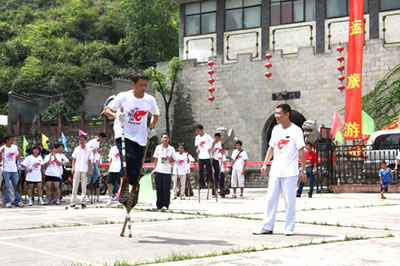 張家界高花燈亦稱高皇燈,是流行于永定沅古坪一帶富有民族特色的舞蹈。表演時(shí),12人至24人不等。配有鑼、鈸、嗩吶、鼓等樂器。每人手中拿一盞紙?jiān)鸁艋\,內(nèi)點(diǎn)蠟燭兩根,頂扎一木偶像,用五色紙剪成戲文故事如“八仙” 、“瓦崗寨”,“梁山英雄 ”之類。高花燈表演有一套程式,要求東起西落,進(jìn)一個(gè)“半邊月”,出一個(gè)“月團(tuán)圓”,舞個(gè)“太極圖”。亦可進(jìn)民房表演,叫“愿燈”,多為祝福、還愿或?yàn)槟臣蚁彩聹惾。打吆喝、打口哨則只能到戶外表演,叫“眾燈”,是讓大家看的。其形式又分民燈、戰(zhàn)燈。前者表演 古代先民的遷徙、繁衍、勞動(dòng)、生活;后者表演打仗破陣。隊(duì)形變化有“織籬笆”、滾柱頭”、“十八斗”、“螺螄轉(zhuǎn)頂”、“八卦陣”、“過天星”、“一字長蛇”等二十余種。如破“象棋盤陣”,主人插三十二根香,擺成棋盤陣,表演時(shí),主人舉紅傘,玩燈者舉黑傘,從河道進(jìn),將眾“子”一一吃掉(即踩香),這是斗智的競賽。只見燈火如流星般穿插舞蹈 ,旁邊配以龍燈互舞(配龍玩燈,是高花燈的主要特點(diǎn)之一),那激起的鑼鼓聲、吆喝聲、口哨聲,掀起有節(jié)奏的聲浪,熱烈而歡快。 張家界高花燈發(fā)祥于張家界市永定區(qū)沅古坪鎮(zhèn)等地區(qū),與沅古坪地區(qū)接壤的沅陵、桃源、慈利等周邊區(qū)縣也有少量玩高花燈的習(xí)慣。 高花燈的燈代表著光明幸福,12個(gè)燈表示12個(gè)月,月月平安無事。每年春節(jié),每個(gè)村寨都要操練一班高花燈,辭舊迎新。制作時(shí),藝人用竹篾和紙?jiān)?2或24個(gè)燈籠,在燈籠下加上一個(gè)長柄燈托,并在燈籠上扎上五顏六色的“故事”,如“八仙”、“耿氏送子”等。夜晚,在燈籠里點(diǎn)上木油臘燭,一人舉一個(gè)燈籠,邊舞邊組成多種隊(duì)形。一眼望去,流光閃爍,尤如銀河戲舞。 張家界高花燈不但為本鄉(xiāng)本土的觀眾所喜愛,而且受到海內(nèi)外朋友及國際友人的高度贊賞。因?yàn)樗侵袊爬系拿耖g舞蹈代表,它以自成體系的記譜方法,延繼著中國舞蹈的血脈,以其悠久的舞蹈歷史和多元文化特征,被舞蹈界認(rèn)為是“中國舞蹈歷史上的活化石”,極具學(xué)術(shù)研究價(jià)值和很高的審美價(jià)值。已列入全省第一批非物質(zhì)文化遺產(chǎn)保護(hù)名錄。 高花燈相傳起源于東漢章帝初年,時(shí)“ 中蠻”覃兒健在澧水中下游舉義反漢,與漢軍“戰(zhàn)于洪下”(相傳為今大庸紅土坪,待考),洪下“蠻人”用火 把跳舞為義軍吶喊助戰(zhàn),終因漢軍勢眾,覃兒健與義軍全部戰(zhàn)死(至今留下懸鼓坪、御甲埡、扎營山、烽火臺(tái)等古戰(zhàn)場遺跡)。以后,當(dāng)?shù)匦U人每年都必在過 后年(從正月初一至元宵節(jié))打火把集會(huì)跳舞, 栽“ 陽樁”(土話栽跟頭),表示對(duì)“洪下之戰(zhàn)”的紀(jì)念 。久而久之,火把進(jìn)化成燈籠和扎人物事故,表演也 有一定規(guī)矩。至今,這種舞蹈藝術(shù)還保留著古老、原始、粗獷、豪放、悲壯的特色。 |