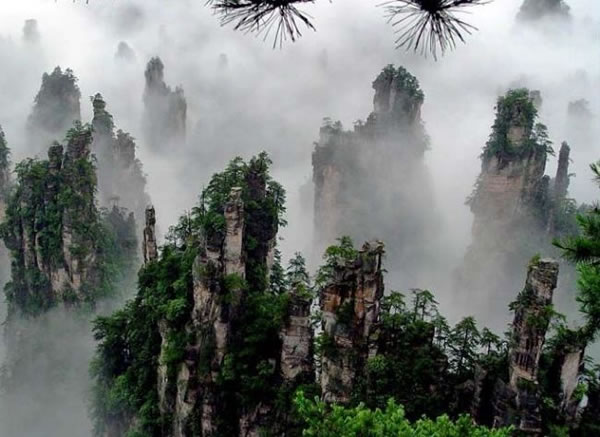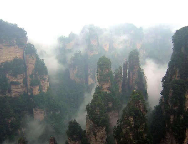 張家界神堂灣 坐落在天子山上的神堂灣,自古以來蒙上一層神秘的色彩,其深不可測,其神不可言傳。它是一個天然的半圓形天坑,面積達10余公頃,三面懸崖峭壁,灣內深不見底,神秘莫測;有時霞光萬道,瑞氣干條;有時又陰風慘慘,霧雨綿綿。更令人驚嘆的是,只要你靠近潭邊,耳邊便隱隱約約響起一片鳴鑼擊鼓、人喊馬嘶的聲音,似有千軍萬馬在鏖戰(zhàn)神堂灣,位于湖南省桑植縣(張家界內),天子山的神秘禁地,為一桶形深谷,四圍石峰如屏,深 約600余米,谷底有深潭,終日云霧彌漫,猶聽萬馬千軍嘶鳴之聲。神堂灣長期與世隔絕,傳說是神仙聚會的地方。這里有著一望無際的原始森林,為整個神堂灣鋪上一層厚厚的綠氈。在這里還有世界上罕見的白蛇,體長1-1.5米左右,形似一根軟玻璃棒。如果在這里點燃篝火,火一點燃,火花上頭便冒起一縷又粗又濃的白色煙霧,順著神堂溪向谷中漂去。溪水平則煙平,水直則煙直。當溪水曲折往復,白色的煙霧也隨之往復曲折,猶如兩條白龍,騰飛于彎彎曲曲的山谷之中。