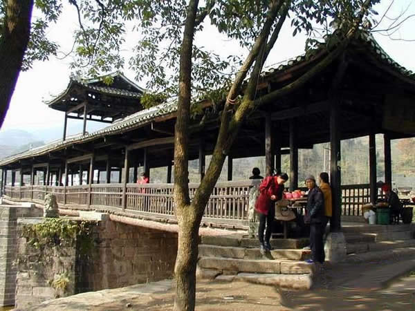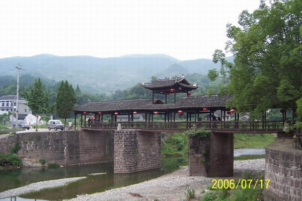 | 賀龍橋原名永安橋,是賀龍曾祖父賀廷宰首倡修建的,它是一座由石墩、木梁、騎廊組成的風雨橋。賀廷宰熱心公益事業(yè),見玉泉河“奔流湍急,道路為!保腥耸植槐,于是決定修橋。由于他只是一個教私塾的文人,修橋工程艱巨,個人經(jīng)費有限,“至斥腴畝以償其負”。后來,賀龍的祖父賀良仕子代父勞,費盡心血,終于在1915年修建成功,深獲遠近鄉(xiāng)鄰稱頌。