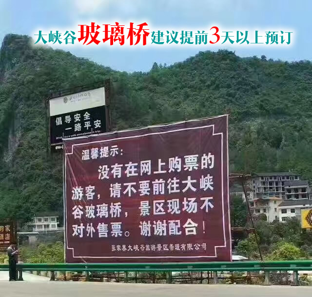 4、沒(méi)有在網(wǎng)上購(gòu)票的游客,請(qǐng)不要前往大峽谷玻璃橋,景區(qū)現(xiàn)場(chǎng)不對(duì)外售票。