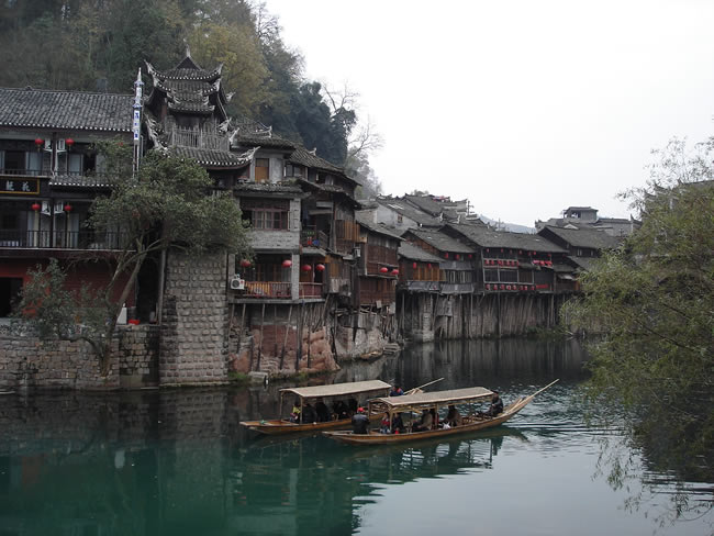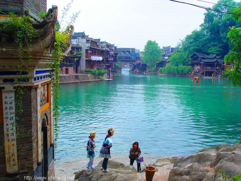 【鳳凰古城位于沱江之畔、群山環(huán)抱、關(guān)隘雄奇、碧綠的沱江依著城墻緩緩流淌,疊翠的南華山麓倒映江中,江中漁舟游船數(shù)點(diǎn),山間暮鼓晨鐘兼鳴,懸崖上的吊腳樓輕煙裊裊,碼頭邊的浣紗姑笑聲朗朗,兩岸已有數(shù)百年歷史的吊腳樓更是別有一番風(fēng)味;順?biāo)麓┻^(guò)虹橋一幅江南水鄉(xiāng)的畫(huà)面便展現(xiàn)于眼前--萬(wàn)壽宮、萬(wàn)名塔、奪翠樓……一種遠(yuǎn)離塵世的感覺(jué)悠然而生;鳳凰--猶如“一幅濃墨淺彩的中國(guó)山水畫(huà)”】